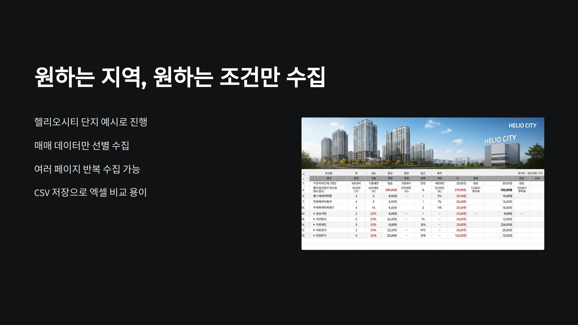 - 원하는 단지, 원하는 조건만 골라서 수집 가능