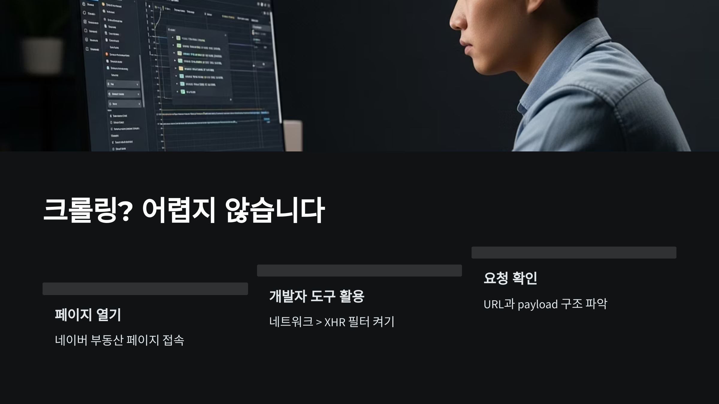 핵심은 네이버 부동산에서 데이터를 불러올 때 사용하는 API 구조를 파악하는 것이었습니다.