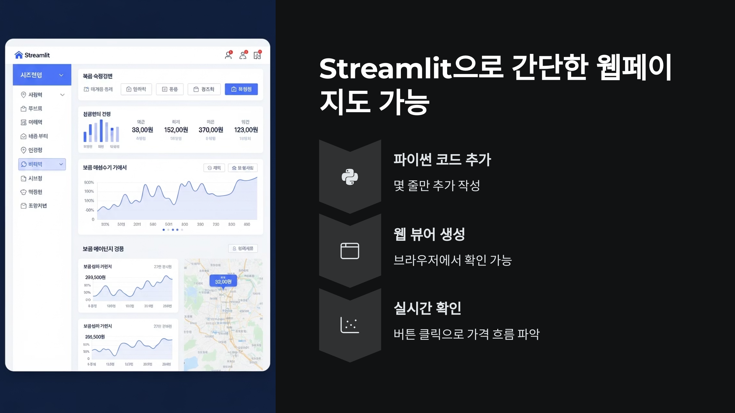 - 파이썬 + Streamlit 조합으로 웹 형태 시각화 가능
