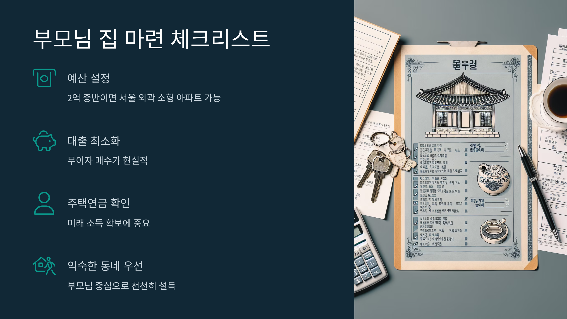 - ✅ 주거지 이동은 부모님 중심으로 천천히 설득