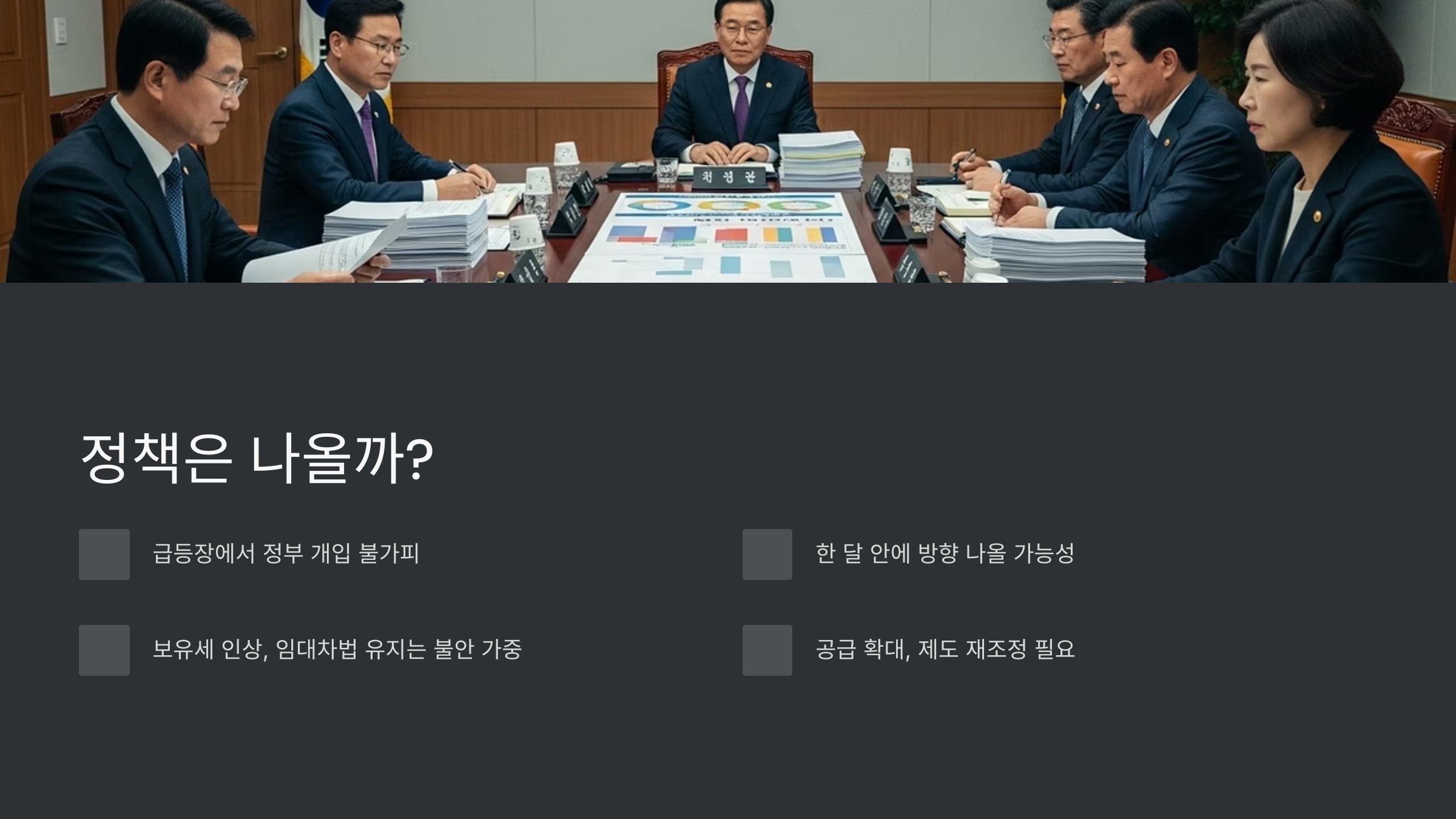 정책, 심리, 시장 구조가 복합적으로 꼬여 있는 상황.