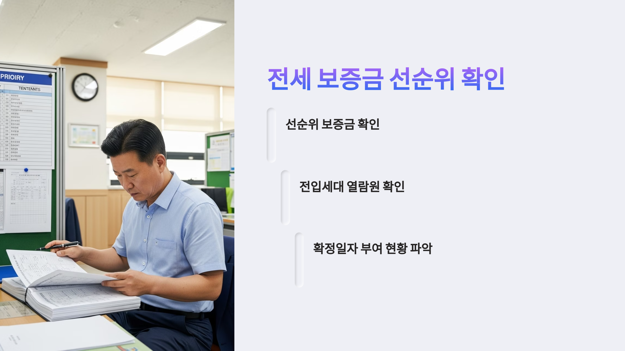 선순위 보증금 파악은 기본적인 절차니까 놓치지 말고 확인해보세요.