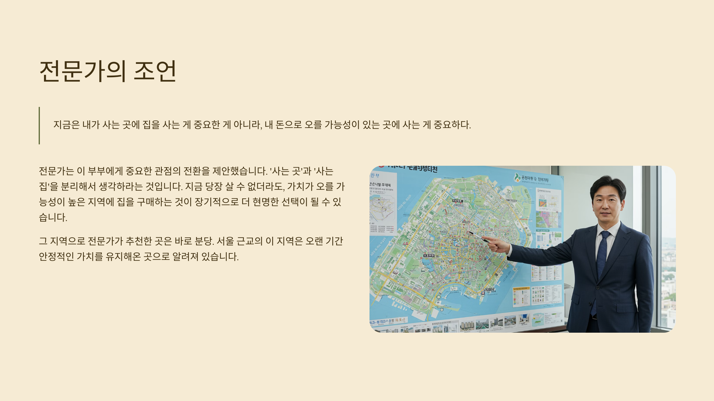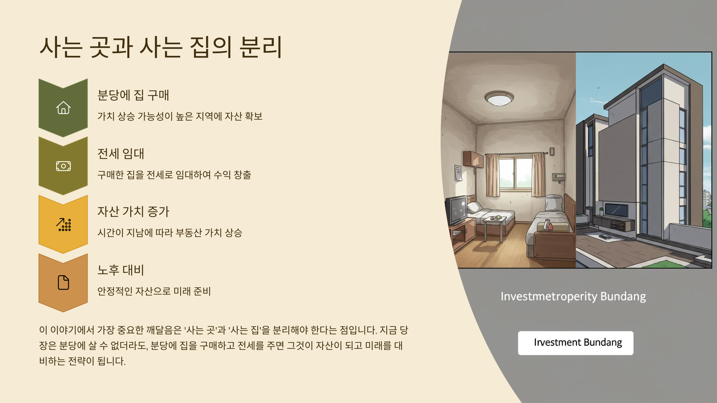 '사는 곳'과 '사는 집'을 분리해야 한다는 말이었다.